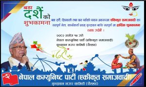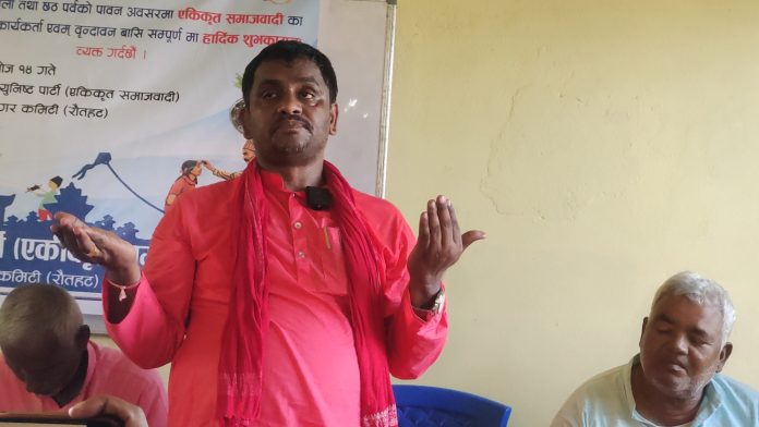 रौतहट, वृन्दावन,असोज १५— नेकपा (एकीकृत समाजवादी) वृन्दावन नगर कमिटीको आयोजनामा भव्य शुभकामना आदानप्रदान कार्यक्रम सम्पन्न भएको छ। कार्यक्रममा सम्पूर्ण नगरवासीसहित देश–विदेशमा रहेका नेपालीहरुको समृद्धिको कामना गर्दै हालै जेन्जि आन्दोलनका क्रममा २३ र २४ गते सहादत प्राप्त गरेका साथीभाइ, प्रहरी जवान र कैदीहरुको अनाहकमा ज्यान गुमाएका आत्माहरूलाई गहिरो श्रद्धाञ्जली अर्पण गरिएको थियो। साथै घाइतेहरुको शीघ्र स्वास्थ्य लाभको कामना समेत गरिएको छ।