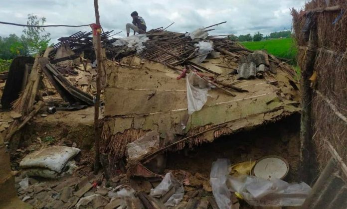 रौतहटमा अविरल वर्षासँगै आएको तीव्र हावाहुरीले ठूलो क्षति पुर्याएको छ। विशेषगरी वृन्दावन नगरपालिका–१ रमौली बैरिया स्थित चमारटोलका रुपलाल राम चमारको फुसको घर शनिबार राति पूर्णरूपमा भत्किएको हो।