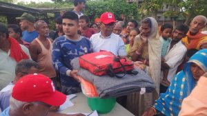 राजेश निर्माणी,रौतहट, असोज २१ —बाढीले प्रभावित बनाएको राजदेवी नगरपालिका–८ लक्ष्मीपुर वेलबिछवाका ७२ परिवारलाई नेपाल रेडक्रस सोसाइटी, रौतहट जिल्ला शाखाले राहत सामग्री वितरण गरेको छ।