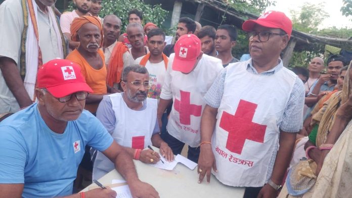 बागमती, बकैया र झाझखोलामा पानीको सतह उच्च भएपछि सो क्षेत्रका दलित तथा अन्य विपन्न समुदाय प्रभावित भएका थिए।बाढीपीडितलाई राहतस्वरूप रेडक्रसले प्रत्येक परिवारलाई एक थान त्रिपाल, एक थान कम्बल, एक सेट हाईजिन किट तथा एक थान ढाकिएको बाल्टिन वितरण गरेको हो।