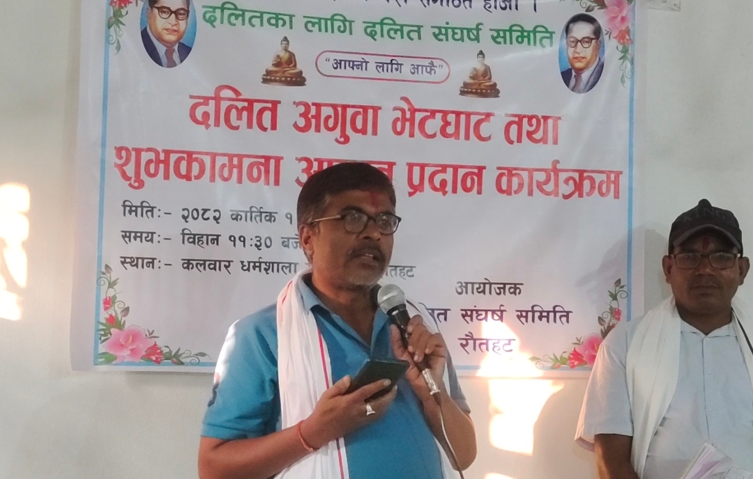 रौतहटको गरुडा स्थित कलवार धर्मशालाको सभाहलमा आयोजित उक्त कार्यक्रममा दलित अधिकार, समान अवसर , सामाजिक न्याय र दलित शिक्षाका विषयमा गहन छलफल भएको थियो। कार्यक्रम दलित संघर्ष समिति रौतहटका अध्यक्ष सोनेलाल रामको अध्यक्षता तथा मानवअधिकारकर्मी धर्मेन्द्र पासवानको प्रमुख आतिथ्यतामा सम्पन्न भएको हो।