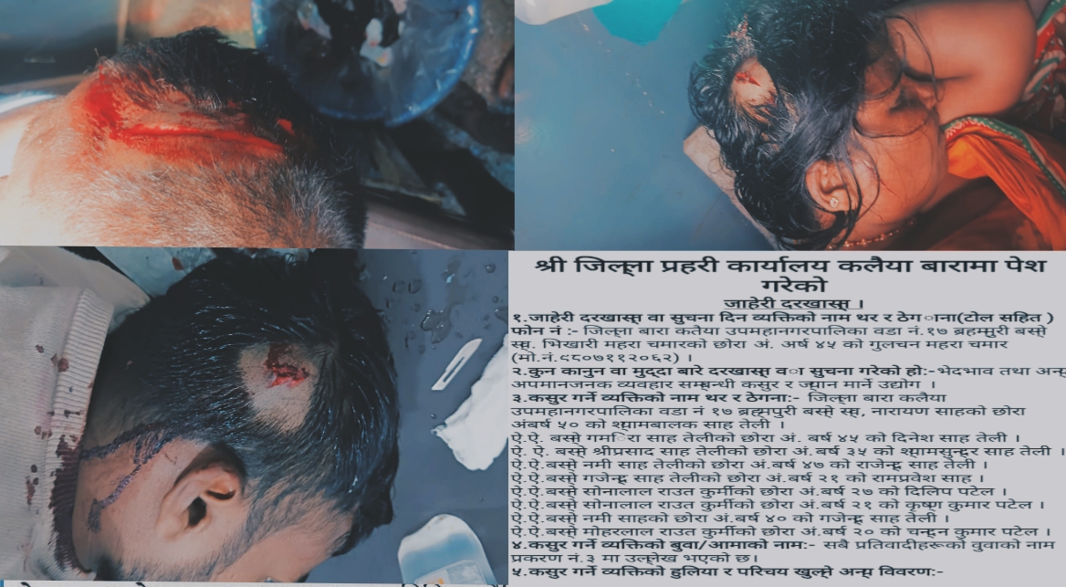 बाराको कलैया उपमहानगरपालिका–१७ ब्रह्मपुरीस्थित रामटोलमा दलित समुदायका एक परिवारमाथि भएको सामूहिक कुटपिटको घटनाले प्रहरी प्रशासनको भूमिकामाथि गम्भीर प्रश्न खडा गरेको छ । पीडित पक्षका अनुसार असोज महिनामै जिल्ला प्रहरी कार्यालय, कलैयाको पहलमा छलफल गरी टुंग्याइसकिएको छुवाछूतसम्बन्धी विवादलाई निहुँ बनाएर मंसिरमा कुनै दोष र गल्ती नहुँदै योजनाबद्ध रूपमा कुटपिट गरिएको हो ।