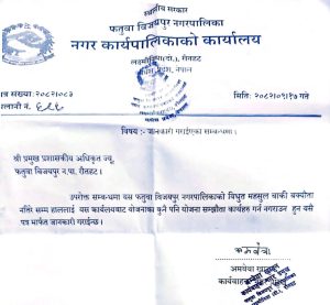 कार्यवाहक नगर प्रमुख अमवेया खातुनद्वारा हस्ताक्षरित पत्रमा नगरपालिकाको आर्थिक अनुशासन कायम गर्न तथा विद्युत् महसुलको बक्यौता चुक्ता गराउनका लागि यो निर्णय लिइएको स्पष्ट गरिएको छ।